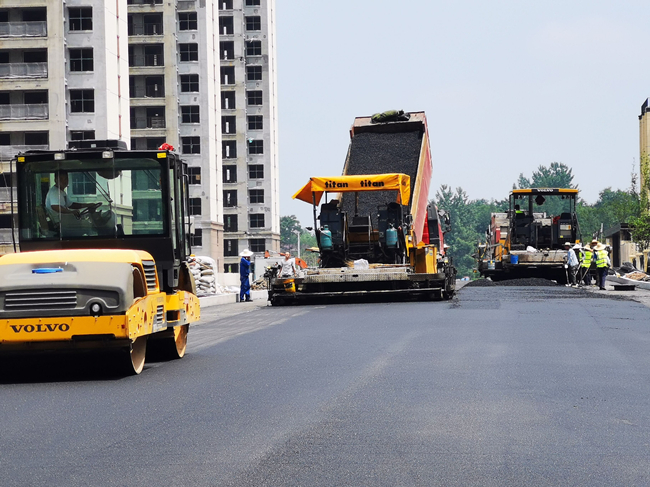 圖為舒城市政項目瀝青上面層攤鋪工作