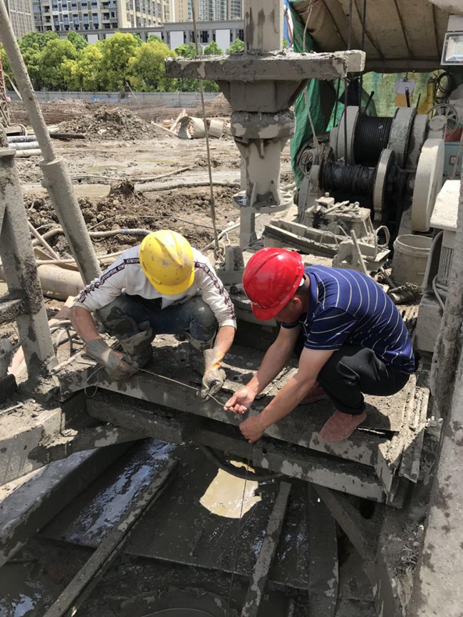 圖為項目管理人員在實測灌注樁孔深及沉渣厚度