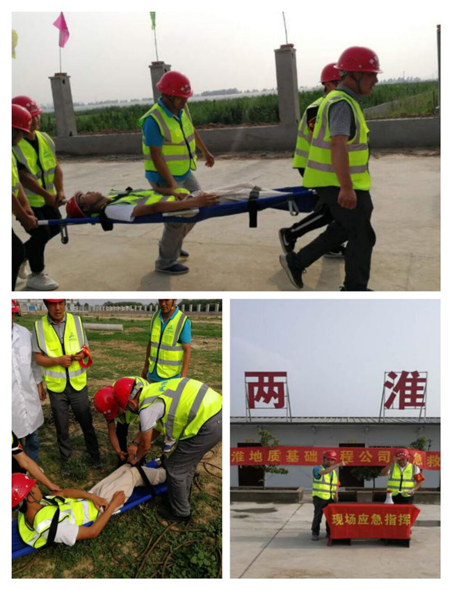 在懷遠縣渦北污水處理廠二期項目部,項目部員工進行物體打擊事故應急救援演練。市政建筑公司和基礎公司懷遠縣渦北污水處理廠二期工程項目部管理人員全部參加。副總指揮接到報告,現場一施工作業人員被掉落物體擊中倒地,執行組和保障組成員立即疏導現場施工作業人員撤離施工區域。醫療救護組趕赴現場,對受傷人員開展搶救并撥打120,120救護車由安全員引導至現場,將受傷人員送往附近醫院救治。整個演練按設計方案如期完成。