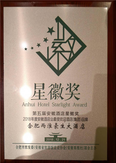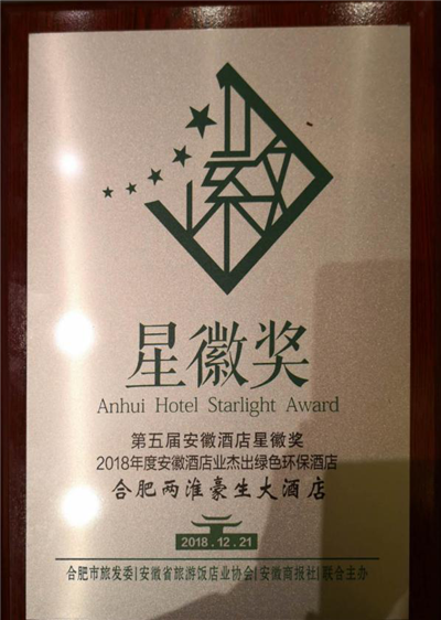 合肥兩淮豪生大酒店積極參與第五屆安徽酒店星徽獎,經過專家評估、“神秘客人”體驗、網路投票層層逐選榮膺三個獎項:分別是“2018年度安徽酒店業最受歡迎酒店【集團】品牌”、“2018年度安徽酒店業杰出綠色環保酒店”、“ 2018年度安徽酒店業杰出酒店職業經理人”。