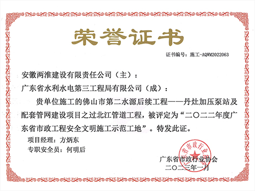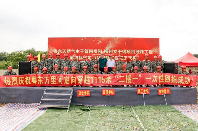 項目意義:該工程采用定向鉆方式橫穿北江,最大穿越深度29.8米,孔徑1720毫米,長度810米,是目前廣東省定向鉆穿越最大孔徑長度,施工難度在行業(yè)罕見,具有極高的開創(chuàng)性和示范性,同時榮獲“2022年廣東省市政工程安全文明施工示范工地”的稱號。