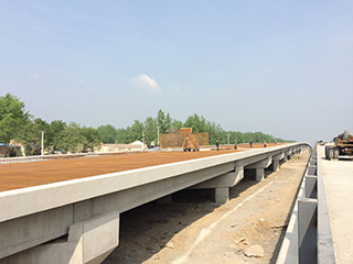 宿州大外環線是宿州市政府調度規模最大、標準最高、投資最多的城市交通重點工程項目。規劃全長54.9公里,我公司投資建設約35公里,其中大橋3座(分別為:東環北段新汴河大橋,北環東段引河大橋,東環南段沱河大橋)。建設標準為:城市一級主干線、雙向八車道、中央分隔帶8米,路面結構為瀝青混凝土路面。