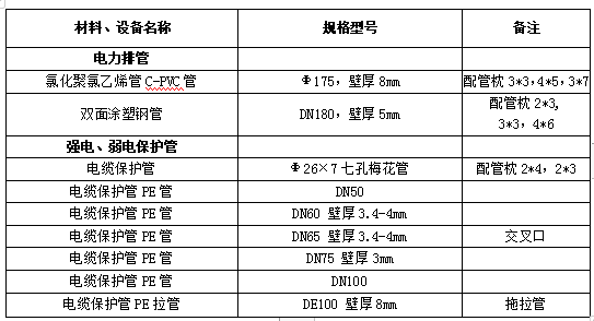 二、投標人資格:1、具有獨立企業法人資格、有效執照及相應的經營范圍;2、近三年內在經營活動中沒有重大違法記錄,具有獨立承擔民事責任的能力;3、具備該項目所需電力排管、強弱電保護管供應能力;4、供應材料需符合以下型號及相關標準(參照下表)