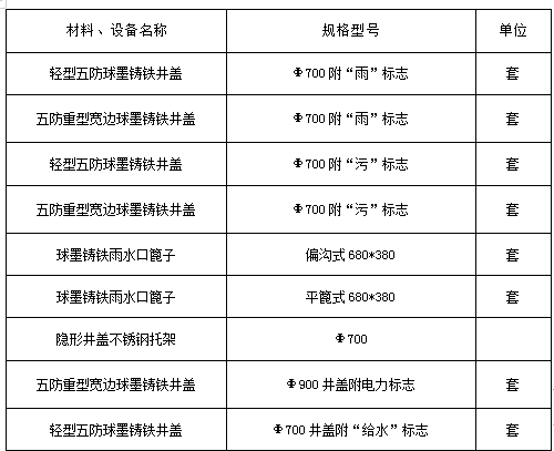 二、投標(biāo)人資格:1、具有獨(dú)立企業(yè)法人資格、有效執(zhí)照及相應(yīng)的經(jīng)營范圍;2、近三年內(nèi)在經(jīng)營活動(dòng)中沒有重大違法記錄,具有獨(dú)立承擔(dān)民事責(zé)任的能力;3、具備該項(xiàng)目所需材料的供應(yīng)能力;4、供應(yīng)材料需符合以下型號(hào)及相關(guān)標(biāo)準(zhǔn)(參照下表一)
