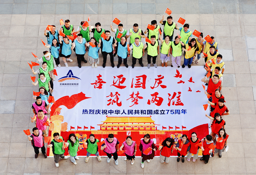 最終,在全體人員的通力合作下,一幅以“喜迎國慶,筑夢兩淮”為主題的絢麗巨畫大功告成。這幅承載著“兩淮人”對祖國深深祝福的畫作,凝聚了大家智慧結晶,寄托了大家對祖國的美好祝愿和對新時代新征程的憧憬和向往。
