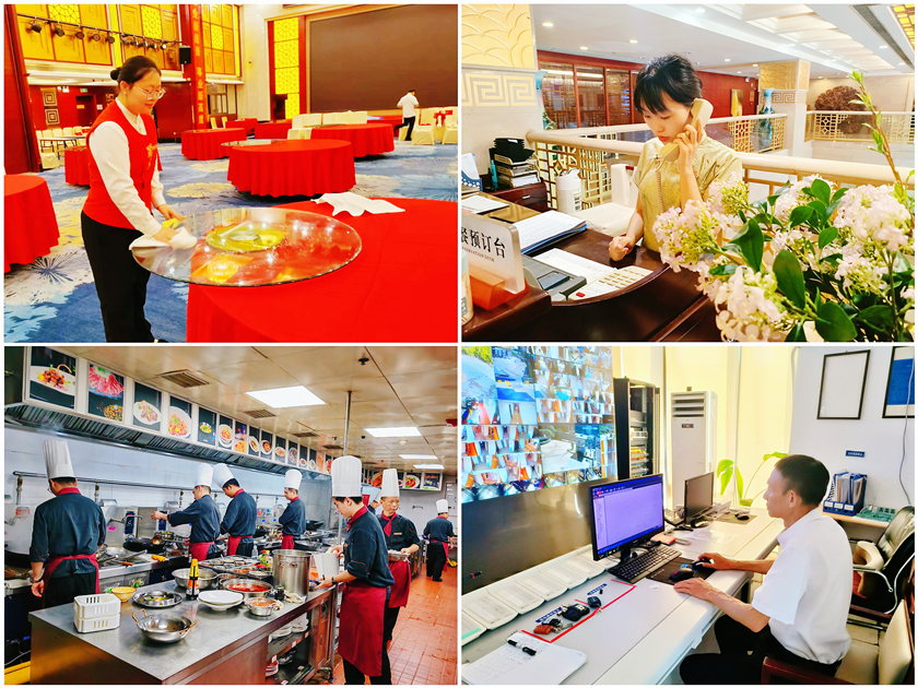 圖為兩淮天鵝湖大酒店國慶期間堅守崗位場景