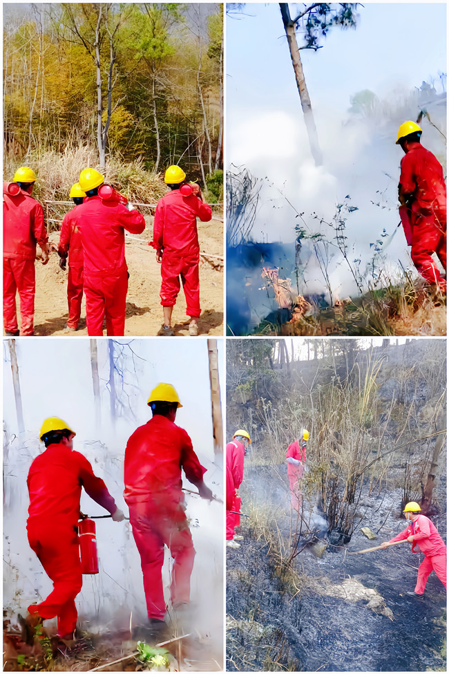在這緊急關頭,黨員劉之輝帶領隊伍沖鋒在前,他們用滅火器壓制火勢,拿鐵鍬鏟土掩埋,爭分奪秒撲滅火勢。明火全部撲滅后,機組人員迅速清理枯枝敗葉,并澆水濕潤裸露土地,在外圍鏟出隔離帶,防止死灰復燃。