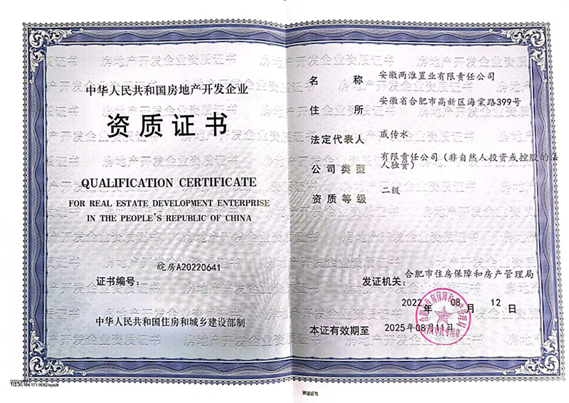 安徽兩淮置業有限責任公司成立于2004年,注冊資本5000萬元,二級房地產開發資質,隸屬于安徽兩淮控股集團有限公司,是主要從事房地產開發與銷售、室內外裝飾、物業管理、建材銷售、房屋租賃等業務全面發展的綜合性房地產開發企業。公司員工綜合素質較高,其中本科及以上學歷占比為73%,中高級占比為41%,擁有國家注冊資格證書人員占比為41%,具有完備的管理體系和完善的管理架構,形成了完整的開發、銷售、服務產業鏈,有力保證了項目建設各階段過渡的無縫銜接,同時實現了企業品牌價值的大幅度提升。